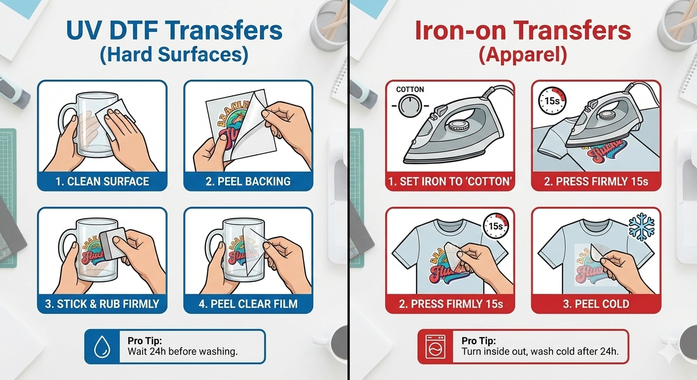 - UV DTF: Do not wash within 24 hours of application to achieve the best adhesion.