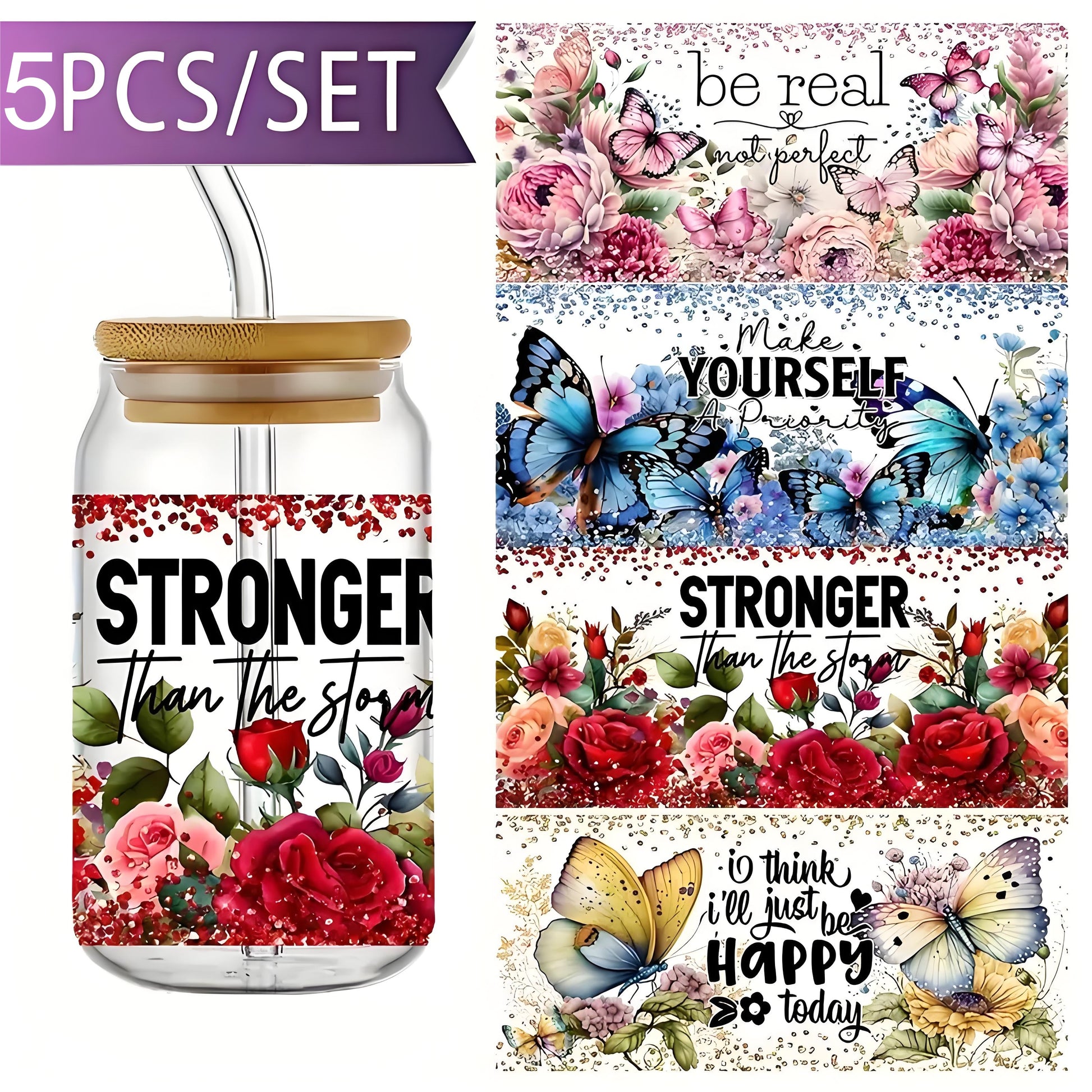 Postive UV DTF cup packaging decal printing sticker DTF transfer sticker 16 oz glass jar packaging